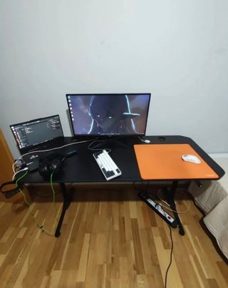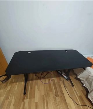 Vendo mesa de 140x60x75, 1 semana de uso y luego fue desmontada, vendo porque la cambié al conseguir una de mayor tamaño y por cuestiones de trabajo. Detalles muy mínimos en dos esquinas que no se notan ni molestan al usarla, ya venían así desde su envío al comprarla a la tienda. Incluye alfombrilla original que cubre toda la extensión de la mesa, tiene 2 agujeros y cesta acoplable para gestionar comodamente los cables, reposavaso y stand para cascos. Entrego desmontada en su caja original