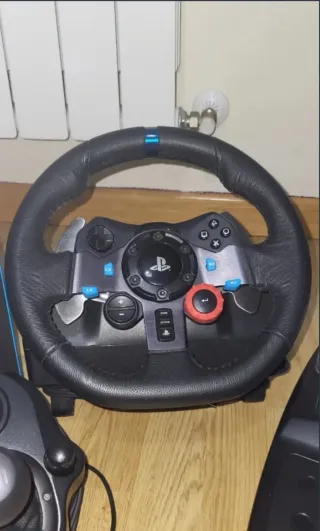 Volante de carreras Logitech G29. - Compatible con PlayStation 4, PlayStation 5 y PC. - Diseño en cuero negro. - Incluye pedales. - En perfecto estado, muy poco uso.
