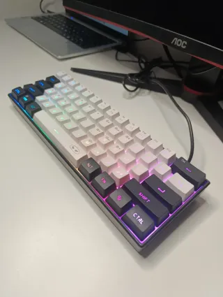 Teclado gaming 60% (negro y blanco). Nuevo en su caja no necesito. Envío rápido/Lleida📦 -Colores RGB personalizables+ personalización de efecto y velocidad -Estilo gaming, mini compacto, válido para PC/PS4/PS5... -Conexion vía cable USB integrado
