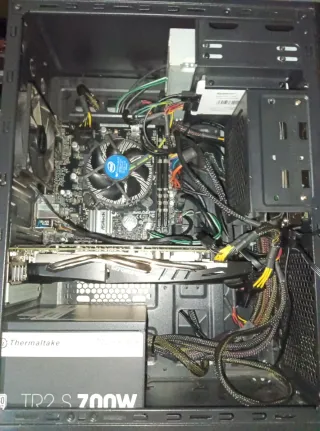 Pc gaming recien montado pasta termica nueva Procesador i5 9500F INTEL Placa base ASROCK H310CM-DVS Memoria RAM DDR4 16GB Grafica GTX 1060 KFA2 EXOC SSD 120GB para el sistema operativo HDD 1TB WESTERN DIGITAL GREEN Caja ZALMAN T3 3 ventiladores auxiliares Fuente de alimentación THERMALTAKE 700W Lector grabador SATA WINDOWS 11 HOME ORIGINAL ACTIVADO montado por piezas acepto cambios ofertas etc cualquier duda preguntar pefecto para jugar gamer gaming pc sobremesa