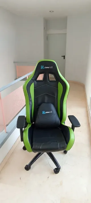 Silla de gaming en color negro y gris, completamente nueva y sin abrir. La primera foto es la muestra, ya que la caja está sin abrir, ideal para regalo. Sólo venta en persona. Con cojín lumbar y cervical. Ergonómica. Regulable en altura y reclinable.