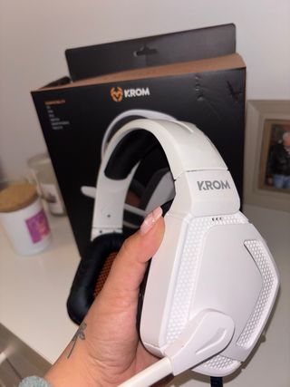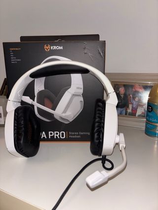 Auriculares gaming Krom K-A Pro en color blanco y negro. Ideales para PC, PS4, Switch y smartphones. - Diseño ergonómico. - Almohadillas cómodas. - Micrófono ajustable. Nunca se usaron fue un regalo que no puede devolver y ya los tenía