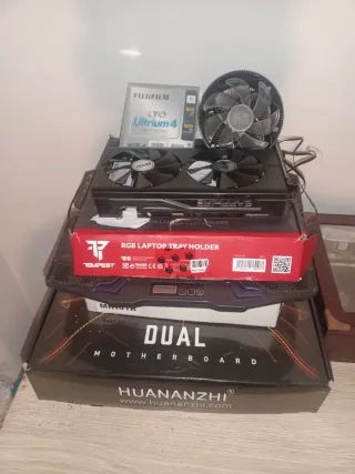 Lote de componentes de informática.sin comprobar se vende para reparar o piezas ya que desconozco su funcionamiento. escucho ofertas - Cartucho de cinta LTO Ultrium 4 de Fujifilm. - Ventilador de refrigeración Cooler Master. - Tarjeta gráfica Sapphire. - Soporte para portátil RGB Tempest. - Placa base Huananzhi Dual.