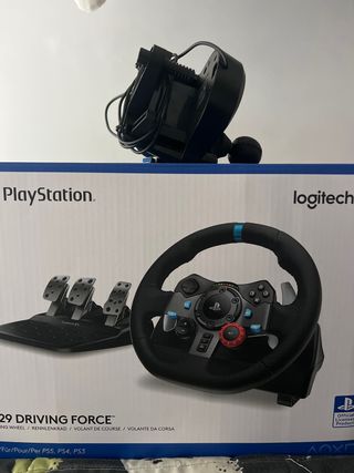Volante de conducción Logitech G29 con pedales. Poco mas de una hora de uso. Está completamente nuevo. Precio negociable - Volante con acabado de cuero. - Pedales de acelerador, freno y embrague. - Palanca de cambios con 6 marchas y reversa - Compatible con PS5, PS4 y PC.