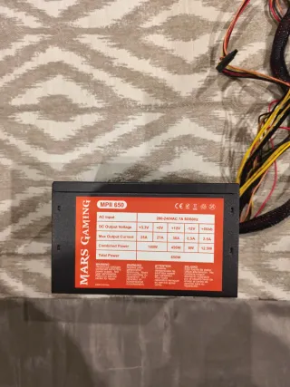 Fuente de alimentación Mars Gaming MPII 650W. - Potencia combinada de 650W. - Voltajes de salida: +3.3V, +5V, +12V, -12V, +5Vsb. - Corriente máxima de salida: 25A (+3.3V), 27A (+5V), 38A (+12V), 0.5A (-12V), 2.5A (+5Vsb). - Potencia combinada: 180W (+3.3V), 456W (+12V), 6W (-12V), 12.5W (+5Vsb). Pc