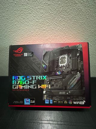 Placa base ASUS ROG STRIX B760-F GAMING WIFI. - Soporta procesadores Intel de 14ª Generación. - Compatible con memoria DDR5. - Socket LGA 1700. - Conectividad WiFi 6E.