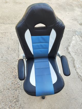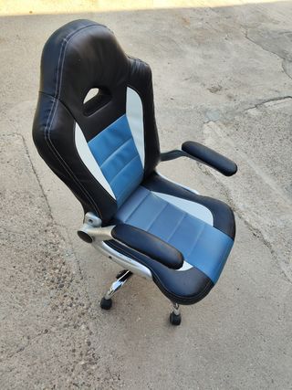 Silla de estilo gaming con un diseño moderno y deportivo. Perfecta para largas sesiones de juego o trabajo. - Tapicería en polipiel negra y detalles en azul. - Respaldo ergonómico con hueco. - Reposabrazos acolchados.