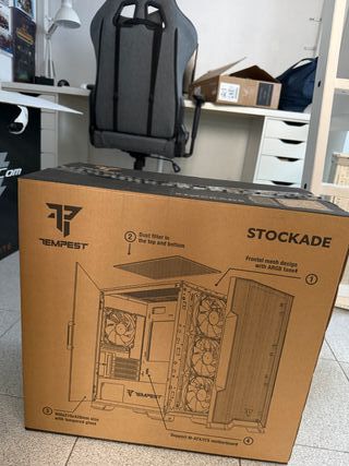 PC de la marca Tempest, modelo Stockade. Diseño frontal con malla y ventiladores ARGB. - Filtro de polvo en la parte superior e inferior. - Dimensiones: 400x210x428mm. - Soporta placas base M-ATX/ITX. - Incluye 4 ventiladores ARGB. RYZEN 7 5700 GB/ 1TB/ 32 RAM SIN SISTEMA OPERATIVO. ESTÁ SIN ABRIR Y DISPONGO DE FACTURA Y DE VÍDEO ABRIÉNDOLO POR PRIMERA VEZ PARA QUE VEÁIS QUE ESTÁ SIN USAR