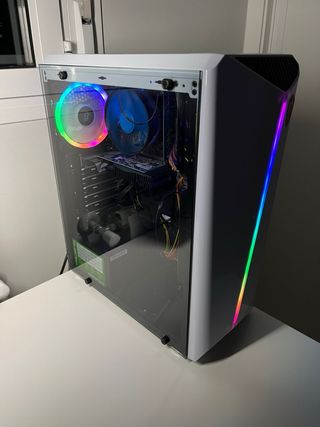 Ordenador de sobremesa para gaming con iluminación RGB. Especificaciones: - I5 10400f - 16gb ram - Placa base MSI b460 pro wifi - 1tb sdd + 500gb sdd - Geforce rtx 3060 (menos de un año de uso) - Corsair 750w gold plus