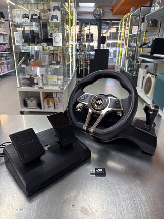 Volante y pedales para juegos de PC. - Volante con agarre cómodo. - Pedales de acelerador y freno. - Conexión USB.