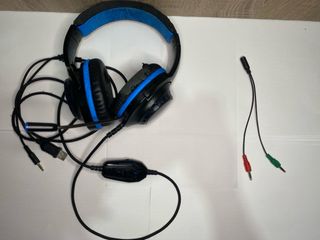Cascos gaming con diadema acolchada en azul y negro. Incluyen un micrófono integrado y un cable conector. Contiene iluminacion RGB y un cable conector de micro y audio. Tiene un tiempo de uso pero funciona perfectamente como nuevo. Tiene signos de uso pero no mucho, acepto intercambio y cualquier pregunta no dude en escribirme.Gracias - Diseño ergonómico. - Diadema ajustable. - Cable conector para audio y micrófono.