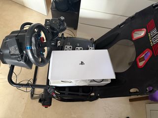 Simulador de carreras con asiento deportivo y pedales. - Thrusmaster T300 RS PS5/PC. - Pedales Thrusmaster T3PM silver, freno ajustable en dureza, 4 modos de presión hasta 200kg. - Estructura de simulador artesanal... en aluminio. - Asiento deportivo ajustable y requinable. Consultar por privado para mas información y fotos.