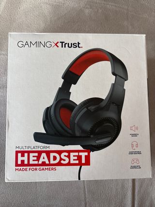 Auriculares de diadema negros y rojos de la marca Trust. Nunca han sido utilizados, siempre han estado en su caja original. Descripción: - Diseño multiplataforma. - Sonido potente. - Almohadillas cómodas. - Conexión a través de mando.