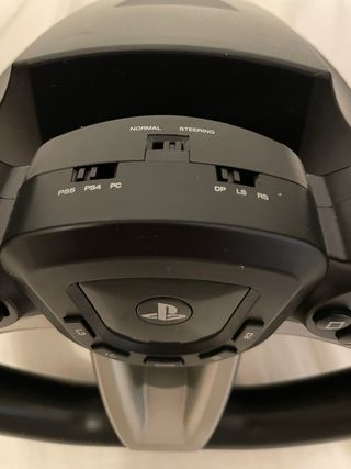 Volante de simulación para consolas y PC. - Compatible con PS5, PS4 y PC. - Modos Normal y Steering. - Botones DP, LS y RS.