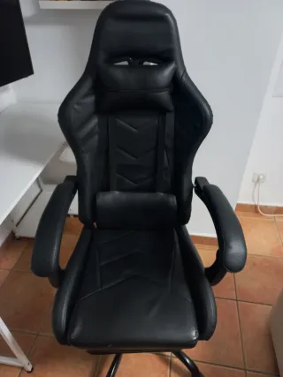 Sillón gaming con un diseño deportivo y ergonómico. - Tapicería en polipiel negra con detalles en rojo. - Reposabrazos acolchados. - Base con ruedas para fácil movilidad. Sillón ergonómico ideal para gaming o teletrabajo. Su diseño se adapta a largas jornadas. Altura y respaldo cómodos, ruedas perfectas, ideal para teletrabajo o gaming. Medidas : Alto 113, ancho 70, profundo 66, asiento 55x55 cm - Funda protectora negra. - Brazos acolchados. - Base con ruedas. Está un poco desgastado del uso, pero la estructura y fuerte y resistentes está impecable Se vende por no usar. Disponible en Marbella. Entrega en mano #gaming #sillon