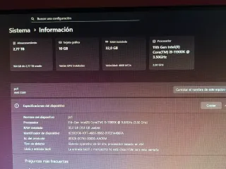 Procesador: Intel I5-12400F (12a generación) 2.50GHz Gráfica: NVIDIA GeForce GTX 1650 SUPER 4GB RAM: 16GB DIMM (8x2) Disco: 477GB SSD Juega todos los triple A actuales sin problema, a FPS estables. Puedo pasar pruebas de rendimiento, temperatura...