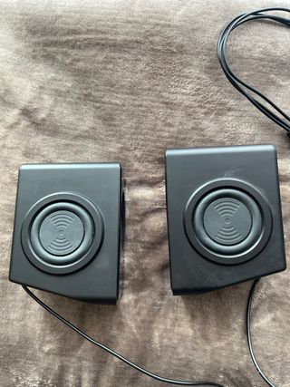 Altavoces compactos con un diseño moderno, acabado en negro con detalles en rojo. - Doble conector: Jack 3,5mm o USB. - Compatibilidad en Mac, PC, Smartphone y tabletas. - Frecuencia 60-20Khz. - Impedancia 40HM. - SNR igual o menos 80dB.