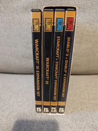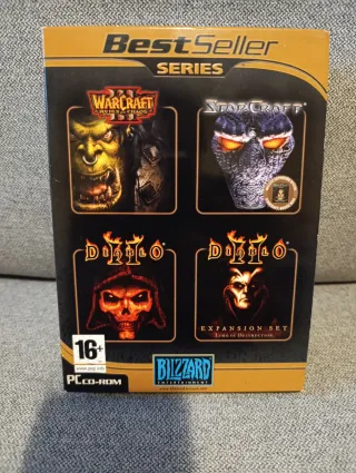 Colección de juegos de PC de la serie Best Seller de Blizzard Entertainment, todos en castellano. Pack ideal para quien quiera disfrutar o conservar algunos de los títulos más conocidos de la compañía en formato físico. Incluye: Warcraft III: Reign of Chaos StarCraft + expansión Diablo II Diablo II: Lord of Destruction 🎁Regalo: Warcraft III: The Frozen Throne Conjunto perfecto para aficionados al PC clásico o coleccionistas. Se vende el lote completo.