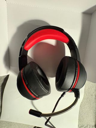 Auriculares negros para gaming. -No se pq solo funciona un lado pero eso es fácil de arreglar y se escucha bien aun así. -Nuevos me costaron 40€ del MediaMarkt. - Diseño ergonómico. - Almohadillas acolchadas. - Diadema ajustable.