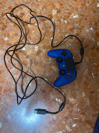 Mando de color azul para PlayStation 4 y PC, con conexión por cable. - Diseño ergonómico. - Botones de acción y cruceta. - Panel táctil. - Conexión USB.