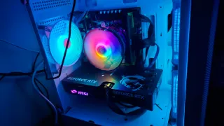 Potente PC gamer con tarjeta gráfica RTX para disfrutar de tus juegos favoritos con la máxima calidad visual. (Lá última foto es del Fortnite - Tarjeta gráfica NVIDIA GeForce RTX. 5060 - Lo vendo con optimización tweak de pago - ryzen 7 5800x - placa madre asous B550M elite - 16 gb de ram (8x2) 2666mhz - Memória 1tb Kingston mm2 - Iluminación ARGB - Se incluye un teclado blanco GamingXtkrust - Refrigeración líquida. - SIN USAR