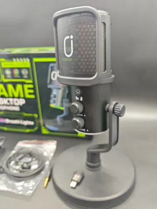 🎤 Micrófono Gaming USB RGB – Modelo U-120 Micrófono de escritorio ideal para gaming, streaming, videollamadas, clases online y creación de contenido. Características principales: Conexión USB Plug & Play (no necesita drivers) Iluminación RGB con efecto respiración Control de volumen y mute integrados Sonido claro y nítido para voz Base estable de sobremesa Compatible con PC, portátil, PS4/PS5 y Mac Incluye: Micrófono de escritorio Base soporte Cable USB Auriculares con cable Adaptador Caja original 📦 Estado: Muy buen estado, poco uso, funciona perfectamente.