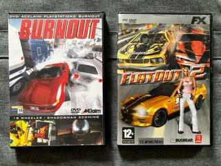 Lote de dos videojuegos para PC. - Burnout (DVD, Acclaim, PlayStation 2) - FlatOut 2 (PC DVD, FX, Bugbear)