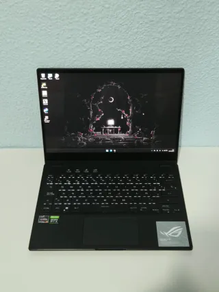 Portátil gaming Asus ROG Flow X13 con su cargador original, funda protectora y bolsa. - Ryzen 7 5700HS - Nvidia RTX 3050 - 16GB de RAM a 4266MT/s - 512GB de almacenamiento - Pantalla táctil 1920x1200 120Hz 13" - Sensor de huellas Portátil perfecto para gaming y trabajos demandantes como edición, diseño o programación. Bastante versátil por su tamaño y ligereza. El cargador no funciona, pero se puede usar cualquier cargador de 100W tipo C o comprar el repuesto. ACEPTO CAMBIO 🌳 MÁS PRODUCTOS EN NUESTRO PERFIL 🌳