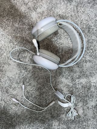 Auriculares gaming Vieta Pro en color gris. - Diseño ergonómico. - Micrófono ajustable. - Conexión por cable. - Compatible con PS5, PC y consolas. 2 meses desde la compra y apenas se han usado