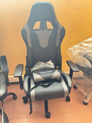 Conjunto de sillas gaming, ideales para tu espacio de juego o trabajo. Están cubiertas con plástico protector. - Diseño ergonómico. - Base con ruedas para fácil movilidad. - Respaldo alto para mayor comodidad.