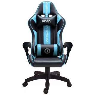 Silla gamer con diseño inspirado en la NASA. Está todavía dentro de la caja sin abrir, por lo tanto está nueva sin estrenar. - Color negro y azul. - Almohada lumbar y cervical. - Diseño ergonómico. - Respaldo ajustable.