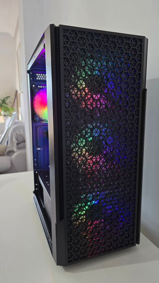 Caja para ordenador de sobremesa con iluminación RGB.trae 4 ventiladores vale 109€ en Amazon - Diseño moderno y elegante. - Panel lateral transparente. - Ventiladores con luces LED. la caja es igual a la de la foto está nueva sin estrenar se vende por abandono de proyecto es la caja sin componentes la caja es nueva sin estrenar la foto es de un amotada por mi