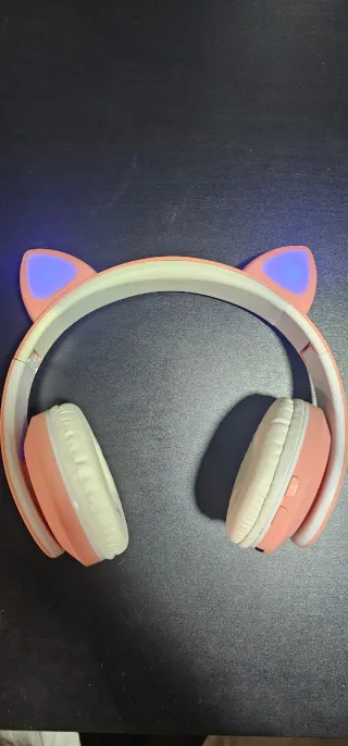 Auriculares Bluetooth inalámbricos con diseño de orejas de gato con luces LED RGB. Ideales para gaming, música, clases online o streaming. 🔹 Sonido claro y buen volumen 🔹 Micrófono integrado 🔹 Luces LED multicolor (orejas y laterales) 🔹 Almohadillas acolchadas muy cómodas 🔹 Diadema ajustable 🔹 Color rosa pastel 🔹 Funcionan perfectamente Muy cuidados, tal como se ven en las fotos.
