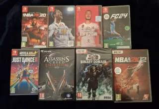 Lote de videojuegos para Nintendo Switch y PC. - NBA 2K20 (Switch) - FIFA 18 (Switch) - FIFA 20 (Switch) - FC 24 (Switch) - Just Dance 2018 (Switch) - Assassin's Creed Liberation HD (PC) NUEVO - Binary Domain (PC) PRECINTADO - NBA 2K12 (PC)