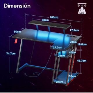 Mesa de escritorio en forma de L, ideal para gaming o trabajo. Su diseño moderno se adapta a cualquier espacio. - Color negro. - Estructura metálica. - Superficie amplia.