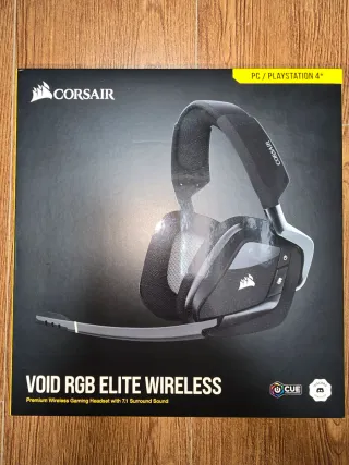 Auriculares gaming inalámbricos Corsair Void RGB Elite. - Compatibles con PC y PlayStation 4. - Sonido envolvente 7.1. - Diseño premium. Están en buen estado y funcionando correctamente. Nuevos tiene un coste de 140€