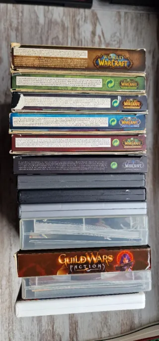 Colección de juegos para PC. - World of Warcraft (varias ediciones) - Guild Wars (Juego base, Factions y Nightfall) - Guild Wars 2 - Prince of Persia: Las Dos Coronas - Star Wars: Battlefront - Devil May Cry 3 Special Edition Precio por todo, individualmente preguntad. Se pueden pasar más fotos sin compromiso.