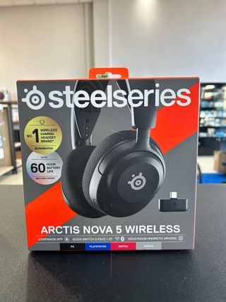 Auriculares inalámbricos SteelSeries Arctis Nova 5. - Hasta 60 horas de batería. - Chipset de próxima generación. - Conexión rápida 2.4 GHz + Bluetooth. - Controladores magnéticos de neodimio. - Compatibles con PC, PlayStation, Switch y móvil.