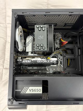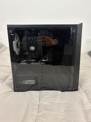 se vende por cambio de ordenador, las pegatinas se quitan facilmente (precio negociable) especificaciones: Caja: MSI GPU: Geforce GTX 1650 4G Placa base : Gigabyte B460M DS3H V2 CPU: Intel(R) Core(TM) i5-10400F 2.90 GHz RAM: DDR4 16 GB Fuente de alimentación: XGE ATX Power Supply 600W Disco duro: 500 SSD, 1TB HDD Refrigeración líquida: Cooler Master Masterliquid 120