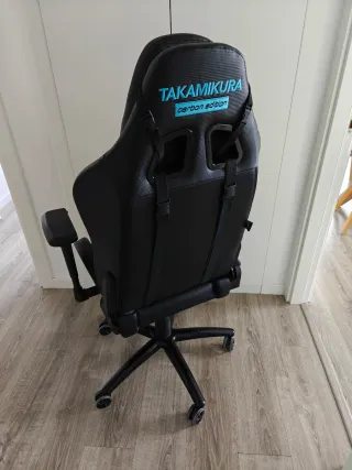Silla gaming Newskill Takimura Carbon Edition en color negro. Está algo usada, principalmente el cojín lumbar que está algo desgastado. - Reposabrazos 4D. - Tapicería de polipiel. - Cojines lumbar y cervical incluidos. - Base de aluminio.