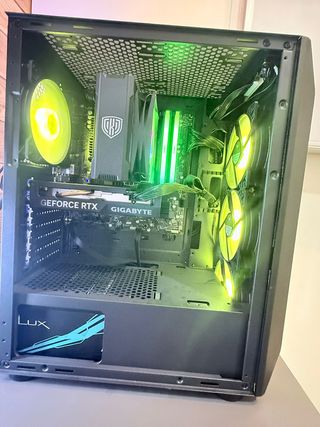 Ordenador de sobremesa para gaming, hacer directos y/o productividad. Componentes: - Tarjeta gráfica GeForce RTX 4060 Ti - Fuente de alimentación Helios 600W - Procesador Intel 13400F - Placa base Asus B760M - 16GB de RAM - Disipador Intel - 1 tb de disco duro ADATA - Windows 11 Pro El pc es ideal para jugar y hacer directos al mismo tiempo. Lo vendo porque cambio a uno de gama más alta.