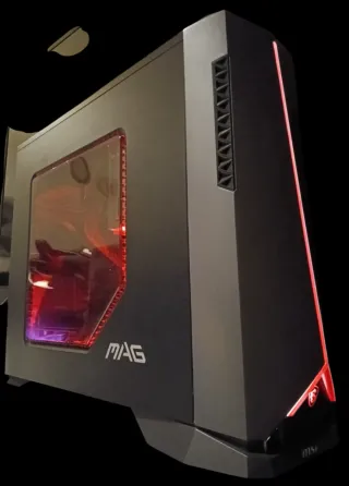 Equipo de sobremesa para gaming con diseño moderno y luces LED rojas. - Incluye teclado, ratón y mando. - Ventana lateral para ver el interior. - Logo MAG visible. Vendo PC GAMING MSI +Teclado+ Ratón+Mando, con las siguientes características: Procesador: Ryzen 5 5600X Tarjeta Gráfica: RTX 4060 8GB Ram: 16 GB DDR4 Almacenamiento: 512 GB SSD Windows 11 Pro (sin clave ) funciona perfectamente -------------------------------------------------------------------- Teclado KROM mecánico Ratón Razer Basilisk Mando XBOX -------------------------------------------------------------------- El ordenador se encuentra listo para su uso