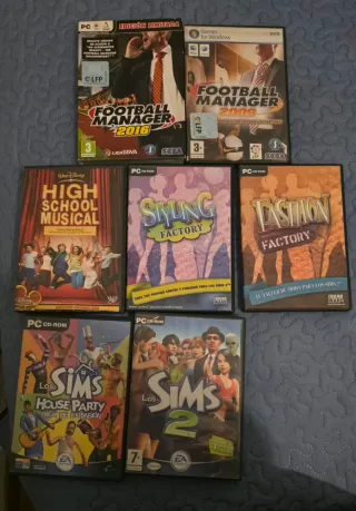 Lote de videojuegos para PC. - Football Manager 2016 (Edición Limitada) - Football Manager 2009 - High School Musical - Styling Factory - Fashion Factory - Los Sims House Party (Pack de Expansión) - Los Sims 2 Se venden tambien por separado a 3€ la unidad