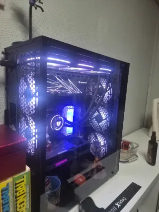 Ordenador Gaming CUSTOM con componentes de máxima calidad. Nada de componentes ni cajas mediocres llamativas, rendimiento con maxima fiabilidad. I9-14900k Rtx4080 Super FOUNDERS EDITION 32x2 GB RAM CORSAIR TITANIUM 6600Mhz CL32 Aorus Master X Z790 Refrigeracion Corsair Capellix 420mm (+ 3 ventiladores noctua 420mm)con configuración push pull. Cuenta con 4 ventiladores mas. Bequiet 1200w 80 plus Platinum Caja Rog case strix helios. Trae antena wifi 7. 2 x 1TB SSD altísima frecuencia configurado en RAID 0.(14000mb/s aprox) Esta como nuevo, nunca ha dado ningún problema, se vende por cambio a portátil.