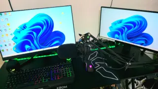 Equipo de PC gaming listo para usar. EN LAS FOTOS SE VEN LAS CARASTERISTICAS INCLULLE: mesa y todos lo k se ve en la foto mas informacion ablarme Targeta grafica 5060ti 16gb Ram de 32gb Memoria 1 de 1tb y otra de 500gb Windos 11 pro - Incluye dos monitores. - Teclado y ratón gaming. - Micrófono con brazo articulado.