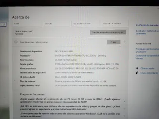 Vendo PC Gaming HP OMEN en excelente estado y totalmente funcional. Equipo muy equilibrado para jugar en 1080p con buenos FPS en la mayoría de juegos actuales. Especificaciones: Procesador: Intel i5-9600K (6 núcleos) Gráfica: NVIDIA RTX 2060 RAM: 32GB Windows 10 Pro instalado y listo para usar DirectX 12 Ideal para: Fortnite, Warzone, GTA V, Valorant, Apex Edición básica de vídeo/foto Estudio o trabajo exigente Funciona perfecto, sin fallos ni sobrecalentamientos. Limpio y bien cuidado. Se entrega formateado y listo para usar.