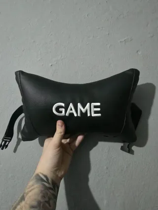 Almohada de confort para silla gaming, con la palabra GAME bordada en blanco. Nueva a estrenar Envio rapido y seguro✅️ - Color negro. - Material: Polipiel. - Diseño ergonómico. - Incluye correas ajustables.