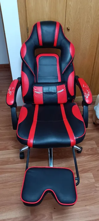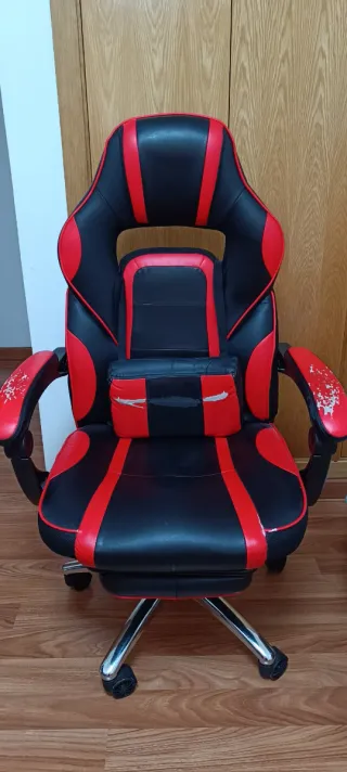 Vendo silla gaming Warblade en muy buen estado. ✔️ Reposapiés retráctil ✔️ Respaldo reclinable ✔️ Altura regulable ✔️ Cojines ergonómicos ✔️ Ruedas en perfecto estado Muy cómoda para jugar o trabajar muchas horas. Tapizado en cuero sintético (polipiel), fácil de limpiar. Sin roturas ni fallos. Se vende por cambio de setup. Preferible entrega en mano por tamaño.