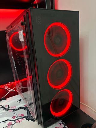 Ordenador gaming con un diseño moderno y llamativo. Cuenta con iluminación LED en color rojo. - Panel frontal con tres ventiladores. - Panel lateral de vidrio transparente. -Todos los componentes funcionan perfectamente -Vendo el disipador, placa(A320M-A PRO MS-7C51), procesador( AMD Ryzen 3 PRO 2100GE Radeon Vega Graphics 3.20 GHz), chasis y fuente de alimentación(600W) -Para quedar en sevilla o alrededores