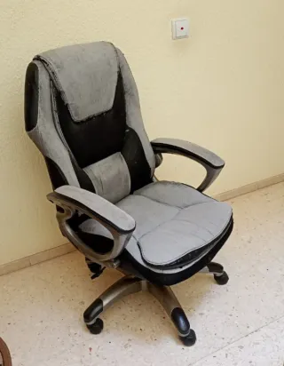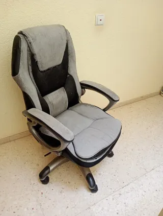 Muy cómoda a la hora de sentarse. Lo único que tiene es que el cuerillo negro que tiene se le ha ido desprendiendo con el paso del tiempo, ya que es facil que se desprenda. Pero lo que viene a ser la tela ha estado bien cuidada y en buen estado. Ideal para adaptarla a un escritorio, ordenador de mesa, oficina, etc. SE PUEDE VER SIN PROBLEMA. Asiento, ordenador, ordenadores, escritorio, gaming, videojuegos, online, gris, negra